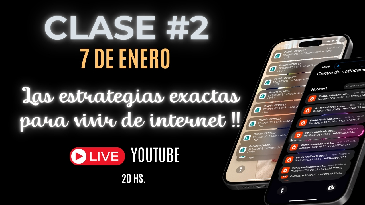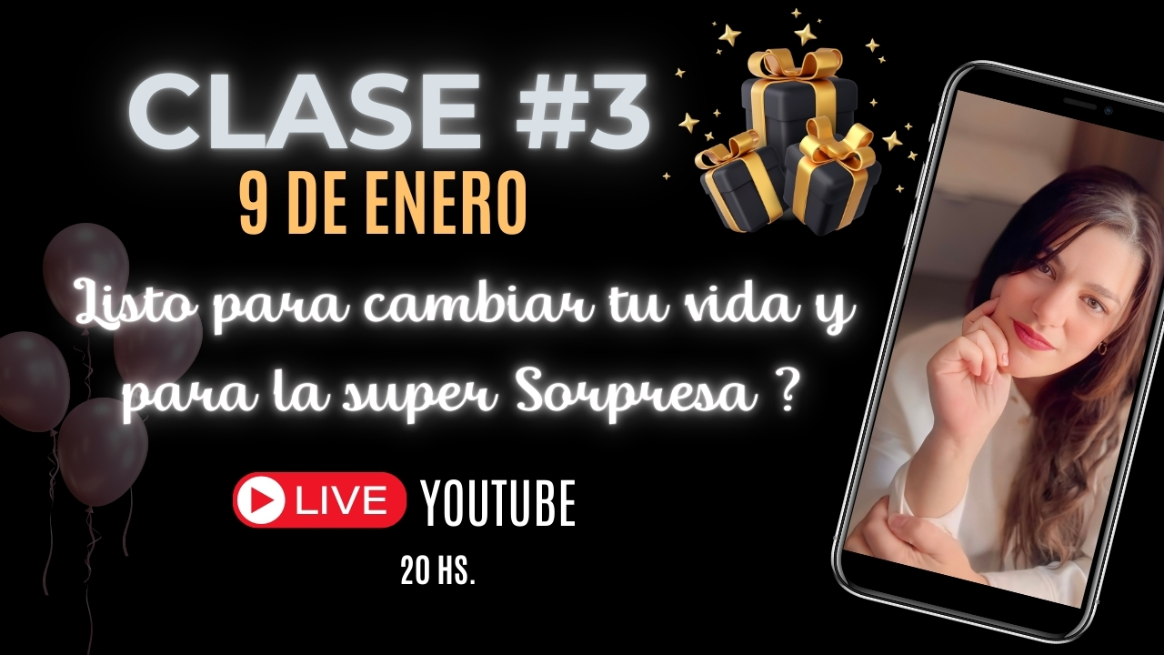 No lo olvides, la clase será transmitida en vivo a las 20:00 hs. 🇦🇷 por YOUTUBE